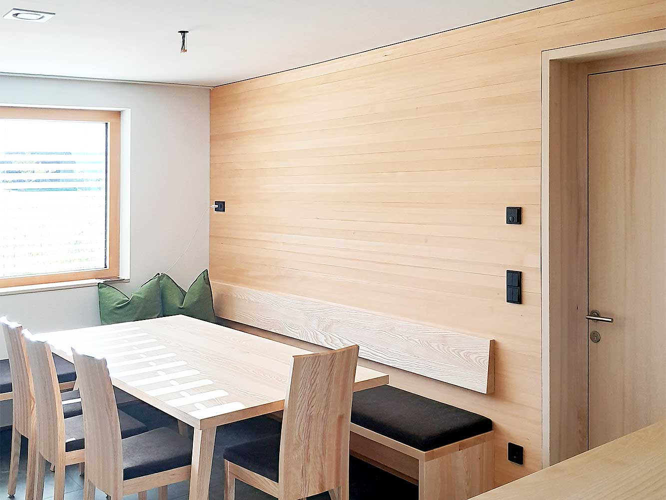 Die Türen wurden nach Wunsch des Bauherren mit Bergholz-Weißtanne gefertigt und sind einzigartig.